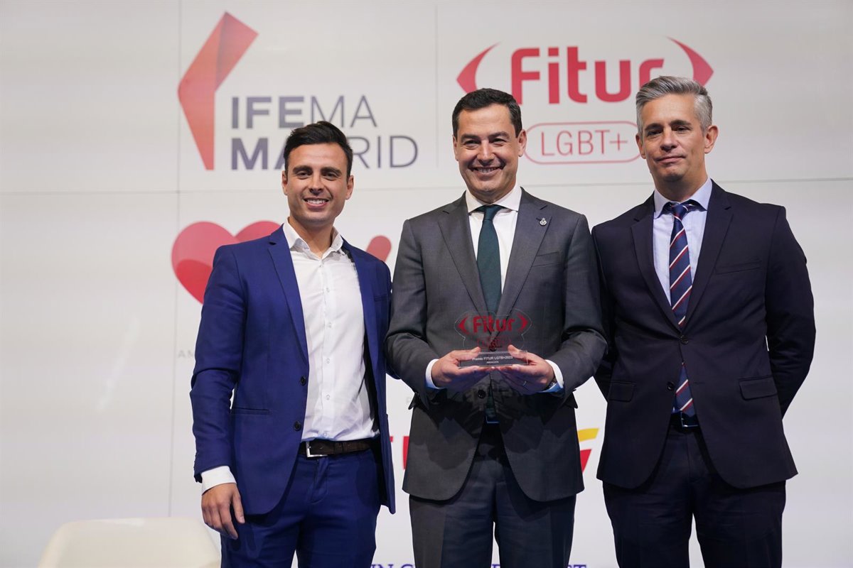 Moreno ha recibido en Madrid el Premio Fitur LGTB+ 2023 que distingue y reconoce la apuesta comprometida y sostenida que todo el Gobierno andaluz viene desarrollando para seguir siendo un destino de excelencia que cubra las necesidades de todos los segmentos y colectivos.