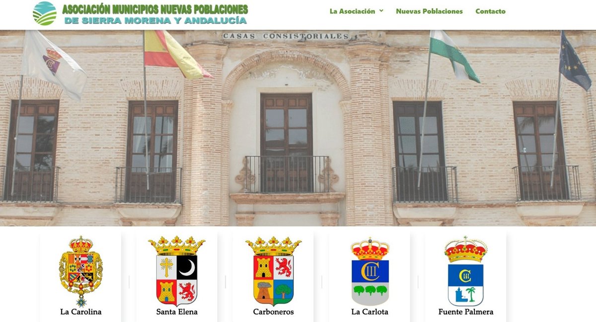 Imagen de la web oficial de la Asociación de los Municipios de las Nuevas Poblaciones de Sierra Morena y Andalucía, ya operativa. - ASOCIACIÓN MUNICIPIOS NUEVAS POBLACIONES ANDALUCÍA