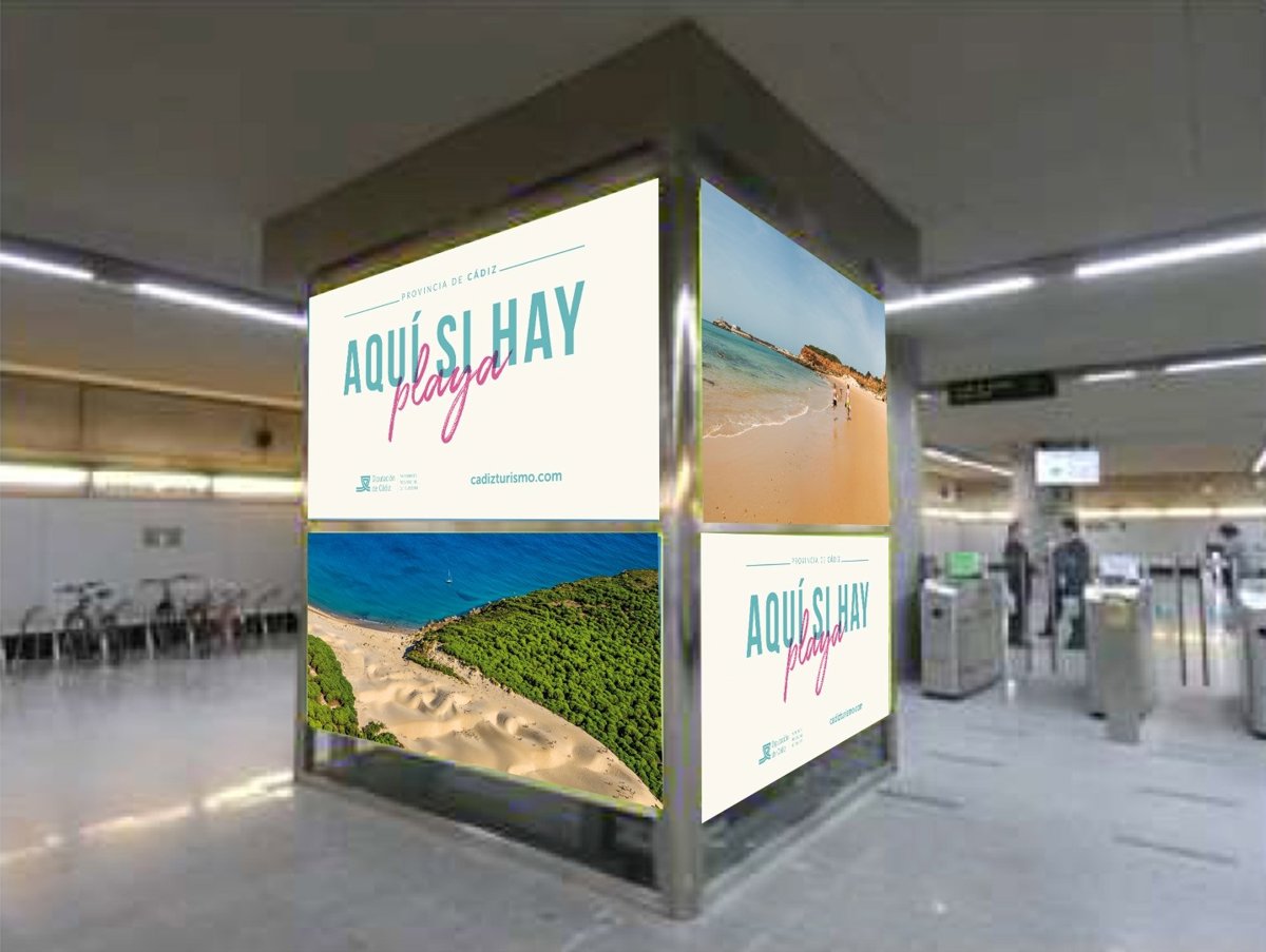 Según ha explicado en una nota, la céntrica estación de metro de Puerta de Jerez en la capital hispalense se llenará por completo de vinilos diseñados para la campaña. Así, se cubrirán con fotos de playas de la provincia de Cádiz todos los elementos tanto interiores como exteriores de esta estación de metro.