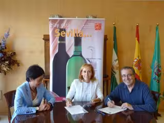 El convenio fue suscrito este jueves por la vicepresidenta de la Diputación de Sevilla, Juana María Carmona, el presidente de la Asociación de Vinos y Licores de la Provincia, Julián Navarro, ha tenido lugar en presencia de la delegada de la Junta, Candela Mora.