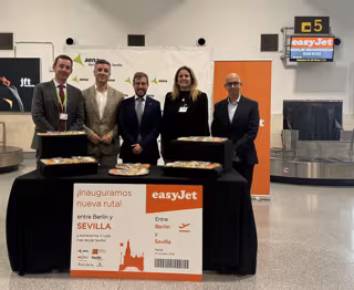 El aeropuerto de Sevilla ha acogido este lunes el acto inaugural de las nuevas rutas de easyJet, que conectarán la capital andaluza con Berlín, Lyon, Milán Malpensa y Ámsterdam, "fortaleciendo así la conectividad internacional de la ciudad y su posicionamiento como uno de los grandes destinos turísticos europeos". El acto se ha celebrado con motivo de la llegada del primer vuelo procedente de la capital alemana.