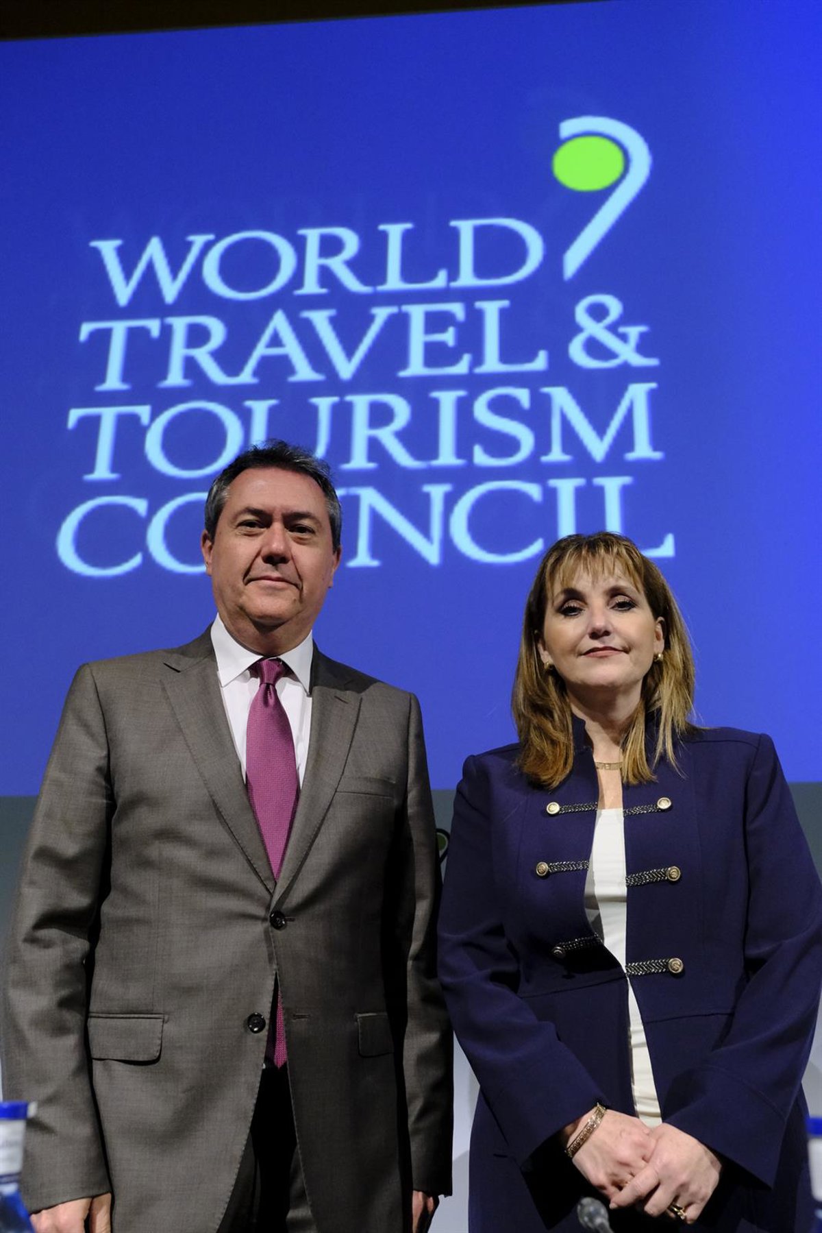 El alcalde de Sevilla, el socialista Juan Espadas, y la presidenta del Consejo Mundial de Viajes y Turismo (WTTC, por sus siglas en inglés), Gloria Guevara, han puesto en valor la celebración de cumbre internacional que se celebra en la capital de Andalucía hasta este jueves y que ha roto "absolutamente todos los récords" de participación y en la que se han anunciado unos 3.000 millones de inversión en los dos próximos años por parte de 15 de las 85 empresas que integran esta entidad para España, un 50 por ciento superior a la inversión comprometida en la anterior ciudad que acogió la cumbre, Buenos Aires.