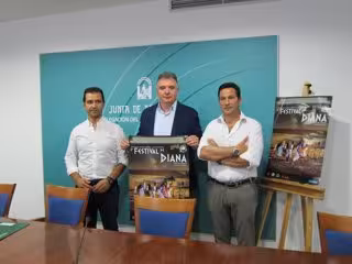 El delegado de la Junta en Huelva, Francisco José Romero, acompañado por el alcalde de Aroche, Antonio Muñiz, y el diputado territorial de la Sierra, Ezequiel Ruiz, ha presentado este viernes el II Festival de Diana, unas jornadas de cultura romana que rememora la vida en la antigua ciudad Arucci-Turóbriga con actos distribuidos entre el 31 de julio y el 8 y 16 de agosto.