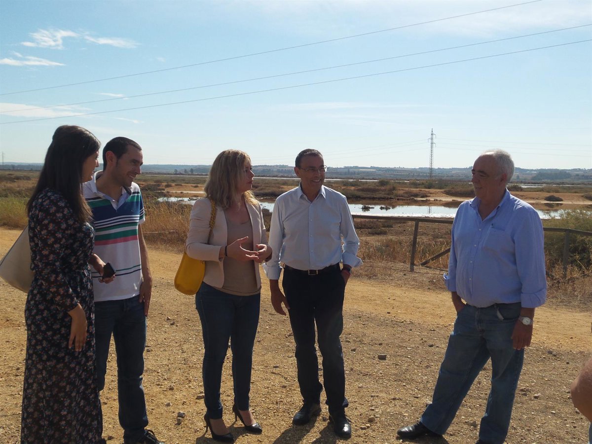 El presidente de la Diputación de Huelva, Ignacio Caraballo, acompañado de la parlamentaria andaluza María Márquez, y la alcaldesa de San Juan del Puerto, Rocío Cárdenas, ha visitado este viernes la zona natural de las Salinas, Muelle y Marismas del Tinto del municipio.