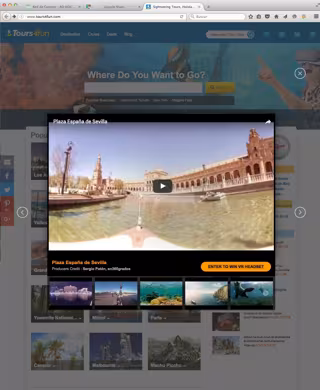 Tours4Fun, en ese sentido, ha incorporado a su portal digital vídeos "en 360 grados" sobre distintos destinos turísticos de gran potencial, a los que ha sumado Sevilla. Para la realización de estos vídeos en realidad virtual, ha seleccionado a la productora sevillana En360grados.com.