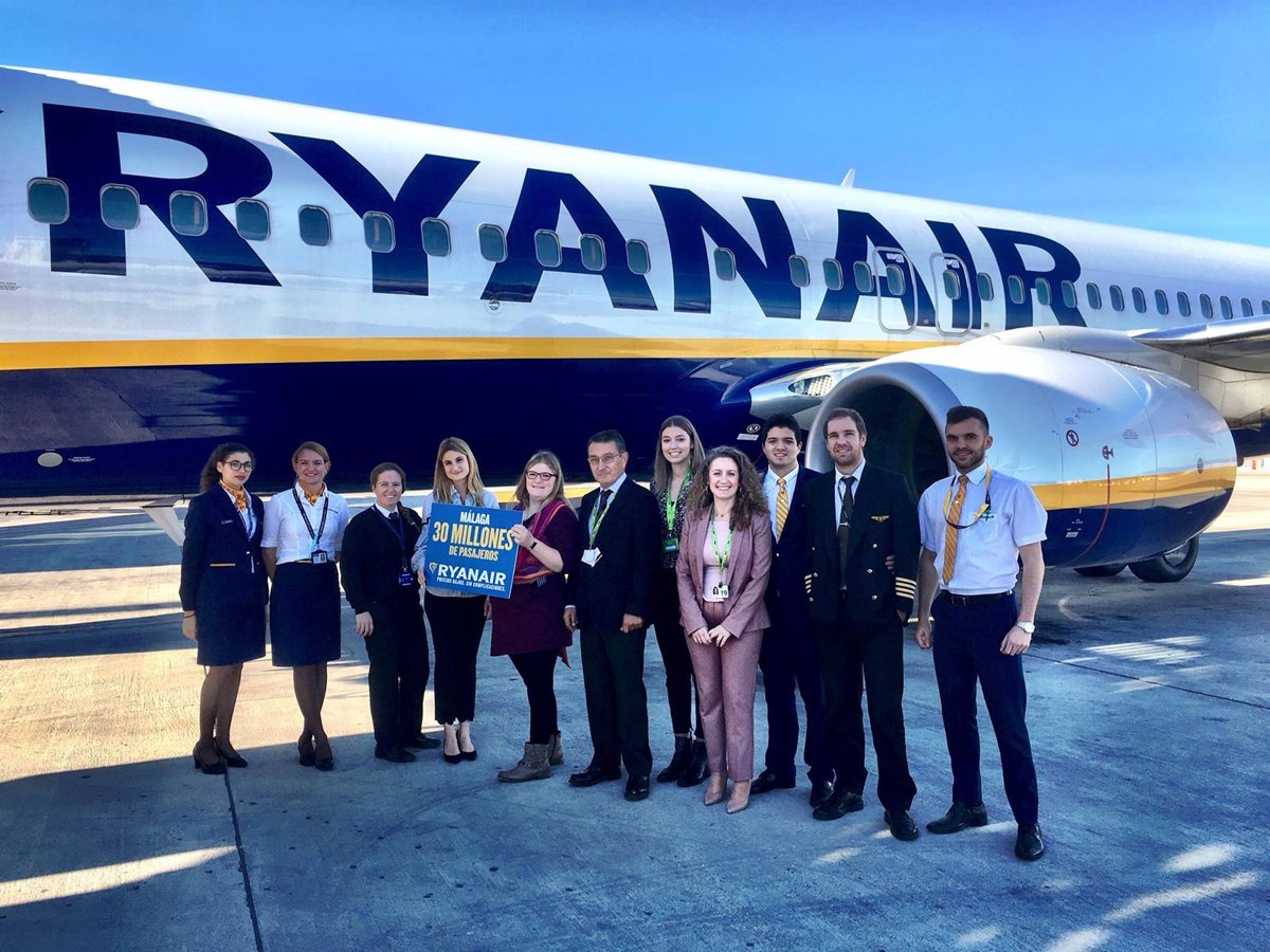 Ryanair ha celebrado este martes que ha alcanzado los 30 millones de pasajeros transportados desde y hacia Málaga, desde que en 2003 despegara su primer vuelo en la ciudad.
