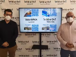 El primer teniente de alcalde del municipio malagueño de Vélez-Málaga y concejal de Turismo, Jesús Pérez Atencia, y el concejal de Nuevas Tecnologías, Juan Carlos Muñoz, han presentado este martes la nueva iniciativa de difusión y promoción del municipio a través de establecimientos hoteleros y alojamientos turísticos.