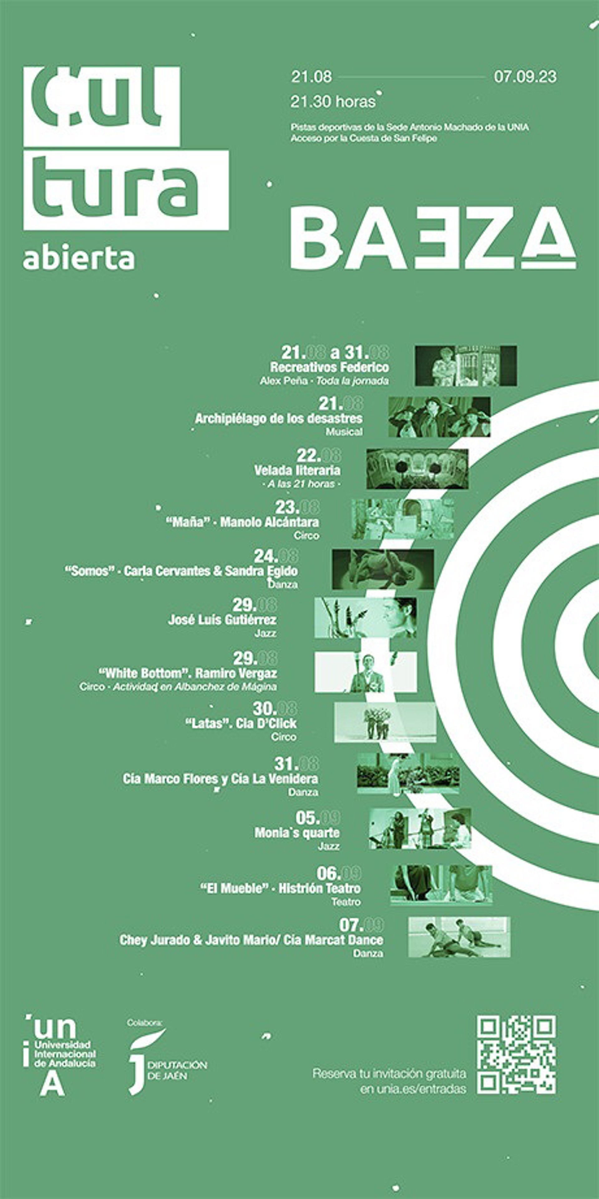 Cartel programación 'Cultura Abierta' de la UNIA en la sede Antonio Machado de Baeza. - UNIA