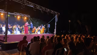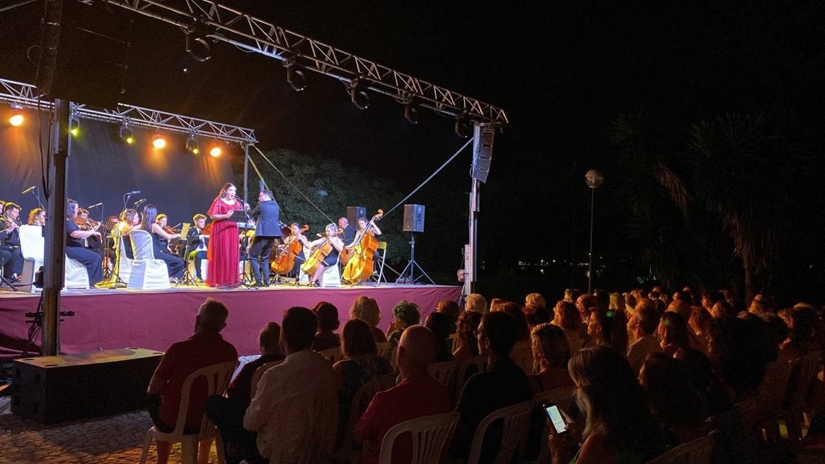 La soprano lírica Alicia Naranjo, junto a la Orquesta Sinfónica de la Compañía Sevillana de Zarzuela, han deleitado a los presentes con un programa que ha ofrecido piezas como 'Sevilla. Preludio de La Torre del Oro', del Maestro Giménez; de México, o 'Las Mañanitas', entre otras.