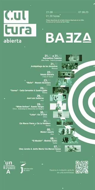 Cartel programación 'Cultura Abierta' de la UNIA en la sede Antonio Machado de Baeza.