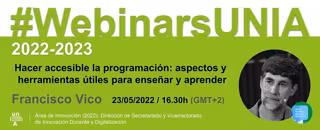 La Universidad Internacional de Andalucía (UNIA) celebrará el lunes, 23 de mayo el #webinarUNIA Hacer accesible la programación: aspectos y herramientas útiles para enseñar y aprender, que impartirá Francisco J. Vico, catedrático en el área de Ciencias de la Computación e Inteligencia Artificial de la Universidad de Málaga (UMA) y creador de ToolboX.Academy, una plataforma gratuita para la enseñanza de la programación y el pensamiento computacional.