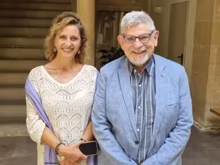 La profesora titular en el área de Trabajo Social y Servicios Sociales de la Universidad de Jaén Eva Sotomayor y el investigador principal de Conicet en el Instituto de Investigaciones Gino Germani Adrián Scribano en la sede de la UNIA en Baeza (Jaén). - UNIA