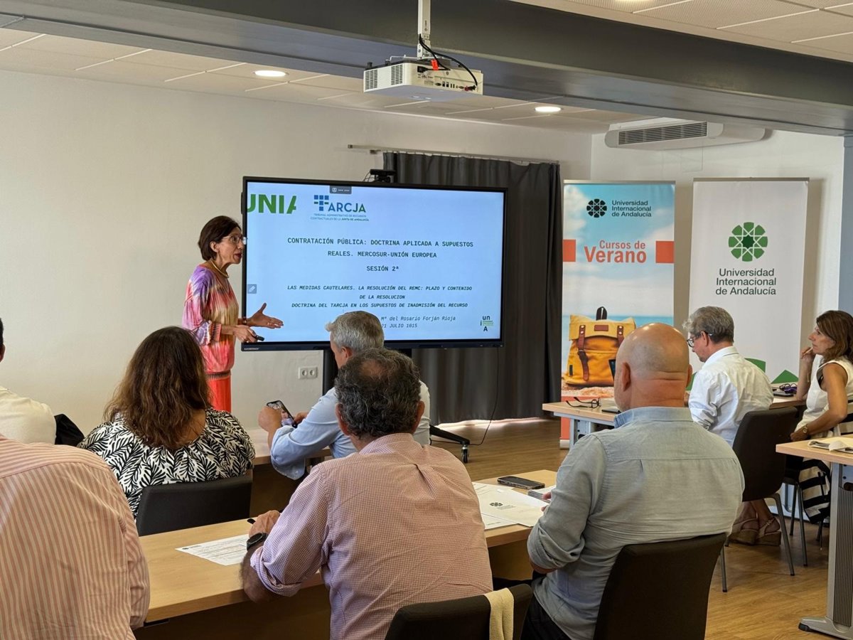 La vocal del Tribunal Administrativo de Recursos Contractuales de la Junta de Andalucía, María del Rosario Forján Rioja, ha participado en los Cursos de Verano de la UNIA en su sede de La Rábida (Huelva), en los que ha destacado que el objetivo del curso 'Contratación pública: doctrina aplicada a supuestos reales. El acuerdo Mercosur-UE. Nuevas perspectivas en la contratación internacional (tercera edición)' es "enfocar desde el punto de vista práctico los problemas diarios que plantea la contratación pública".