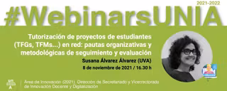 Cartel del webinar de la UNIA 'Tutorización de proyectos de estudiantes (TFG, TFM, etc.) en red: pautas organizativas y metodológicas de seguimiento y evaluación' - UNIA