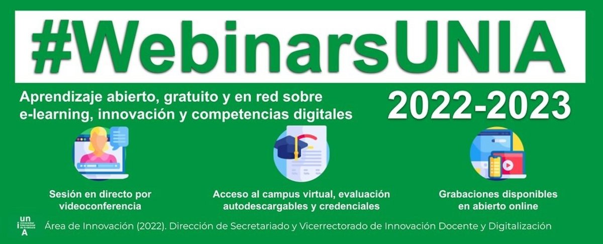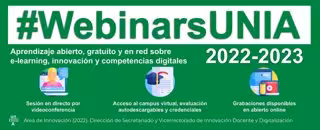 Los #webinarsUNIA son seminarios online gratuitos, orientados al diseño de programas educativos virtuales, la aplicación de las TIC en innovación docente o la creación de contenidos y otras competencias digitales.