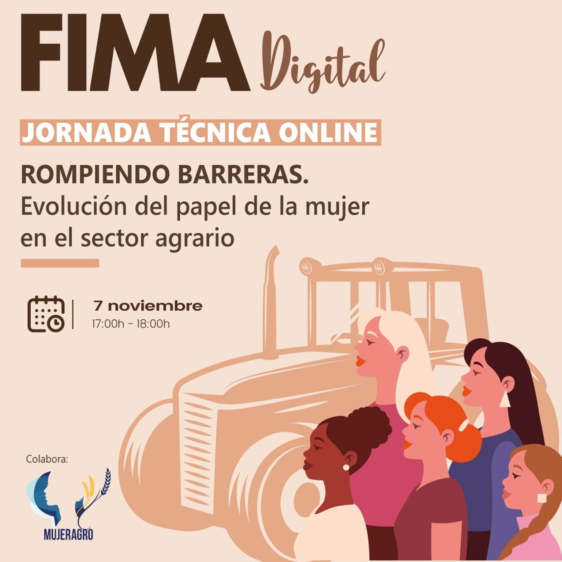 La Feria Internacional de Maquinaria Agrícola (FIMA) continúa con el ciclo de jornadas digitales, en el marco de 'Mujeres Inspiradoras', y celebra una mesa redonda bajo el título: 'Rompiendo barreras. Evolución del papel de la mujer en el sector agrario', dónde se abordará la evolución del rol de la mujer en los últimos años en el sector agrícola.