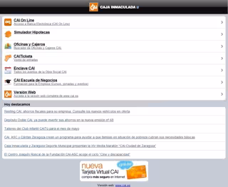 Caja Inmaculada (CAI) ha adaptado su página web, 'www.cai.es', de forma que los clientes pueden realizar cualquier operación o consulta desde sus dispositivos móviles --Iphone, Blackberry, HTC-- "con comodidad, rapidez y seguridad".