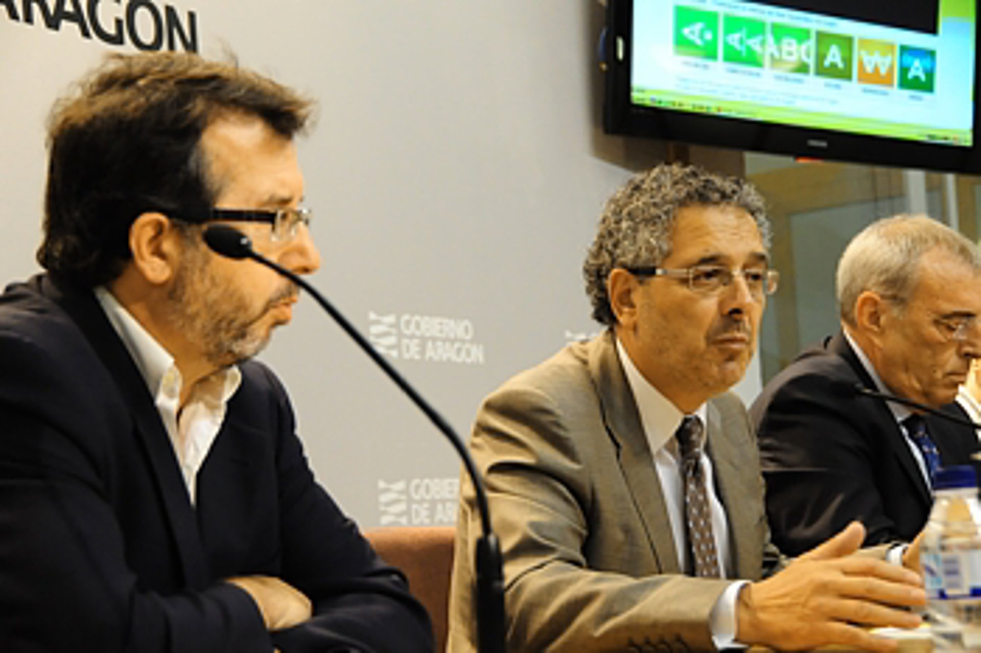El consejero de Política Territorial, Justicia e Interior del Gobierno de Aragón, Rogelio Silva; el director general de Ordenación del Territorio del ejecutivo autónomo, Alfredo Cajal; y el director del Centro de Información Territorial de Aragón (CINTA), Isidro Aguilera; han presentado este lunes, en el Edificio Pignatelli de Zaragoza, las mejoras que se han introducido en el SITAR.