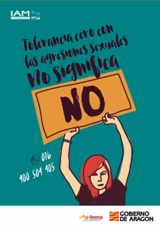 'No significa no. Tolerancia 0 con las agresiones sexuales' se ha compuesto de cartelería; de la difusión, a través de pegatinas, del teléfono 900 504 405 de atención a mujeres víctimas de violencia en Aragón y de la realización de talleres de prevención y sensibilización, llevados a cabo por Cavias, entidad especializada en violencia y abusos sexuales. Estos talleres se han realizado en campamentos, institutos, colegios y espacios juveniles de municipios de todo Aragón.
