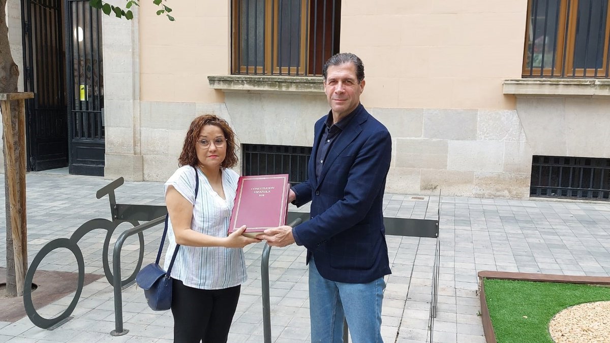 Durante la visita, Fernández ha estado en la Casa Consistorial de la plaza de Joaquín Costa y ha donado a la ciudad un ejemplar de la Constitución Española de 1978, que no tenía desde hace más de veinte años, al haberse extraviado.