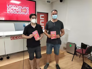 El secretario de Organización de la Federación de Enseñanza de CCOO Aragón, Andrés Mingueza, y el secretario general de la Federación de Enseñanza del sindicato enla Comunidad, Guillermo Herráiz. - EUROPA PRESS