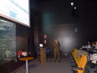 Desde el salón de actos del Acuario Fluvial los asistentes, muchos de ellos escolares, han podido conocer el trabajo que llevan a cabo los militares y científicos españoles en la citada base situada en Isla Decepción (que es la parte superior del Volcán más activo de la Península Antártica) y que se localiza a unos 13.000 kilómetros de España y a 1.000 kilómetros de la población más cercana poblada.