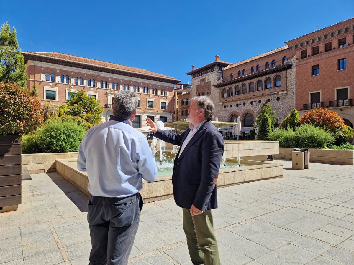 El concejal de Infraestructuras del Ayuntamiento de Teruel, Juan Carlos Cruzado, ha supervisando este miércoles los espacios de la plaza de San Juan en los que se va a actuar.