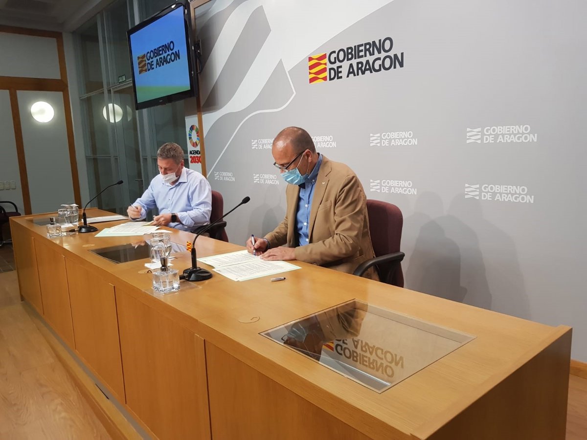 Los consejeros Soro y Faci firman el convenio para el hangar del Aeropuerto de Teruel. - GOBIERNO DE ARAGÓN