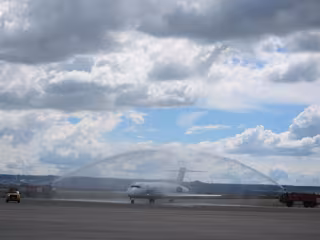 El avión ha sido recibido por los bomberos del aeropuerto, que han procedido a "bautizar" con agua a la aeronave que realiza esta nueva ruta y, después, ha despegado de nuevo con destino Munich. Además, los pasajeros que han viajado esta tarde a la ciudad alemana han podido disfrutar antes del vuelo de una tarta de celebración coronada por uno de los aviones de Volotea.