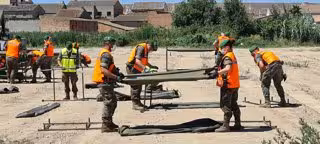 El Ejército ayuda a habilitar el pabellón para los temporeros que deben permanecer confinados en Albalate de Cinca - COMARCA CINCA MEDIO - Archivo