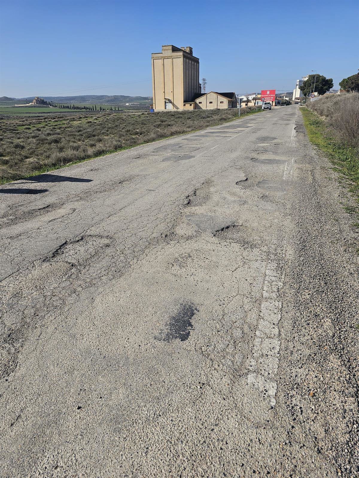 Estado de la HU-831 que sirve de acceso a la localidad oscense de Castejón de Monegros (Huesca) desde la A-230. - AYUNTAMIENTO DE CASTEJÓN DE MONEGROS