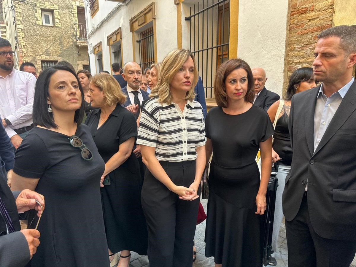 Alegría se ha acercado hasta Ejea para dar el último adiós al que fuera presidente del Gobierno de Aragón, con quien compartió mesa en el Consejo de Gobierno cuando ella era consejera de Innovación, Investigación y Universidad del Ejecutivo autonómico en la legislatura 2015-2019.