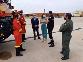 La delegada del Gobierno en Aragón, Pilar Alegría, junto al subdelegado del Gobierno en Zaragoza, Fernando Beltrán, ha realizado este miércoles una visita a la Base Aérea de Zaragoza para conocer algunos de los medios que el Estado dispone para la campaña de incendios, y ha hecho un llamamiento a extremar la precaución para