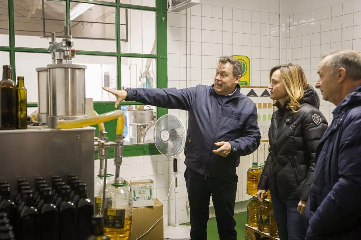 Alegría ha visitado la Cooperativa San Martín, donde ha destacado la aportación de las explotaciones agrarias y las cooperativas a la sostenibilidad del medio rural.