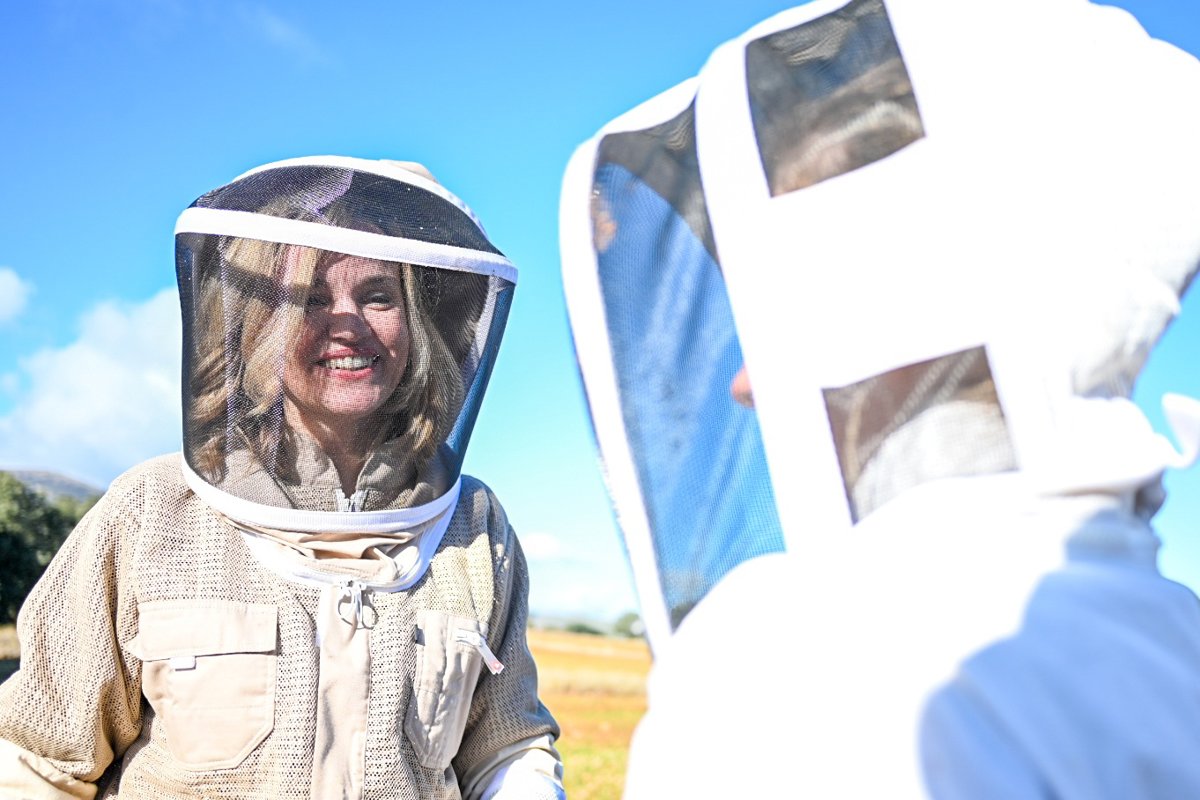 La candidata del PSOE ha escuchado el testimonio de varias mujeres en la Comarca Campo de Borja que han contribuido a la creación de empleo, entre ellas las apicultoras Lucía Ibáñez y Natalia Láinez, asentadas en Talamantes,desde donde trabajan en la cría y selección genética de la abeja negra ibérica, a través de un proyecto que cuenta con financiación de los fondos Next Generation de la UE.