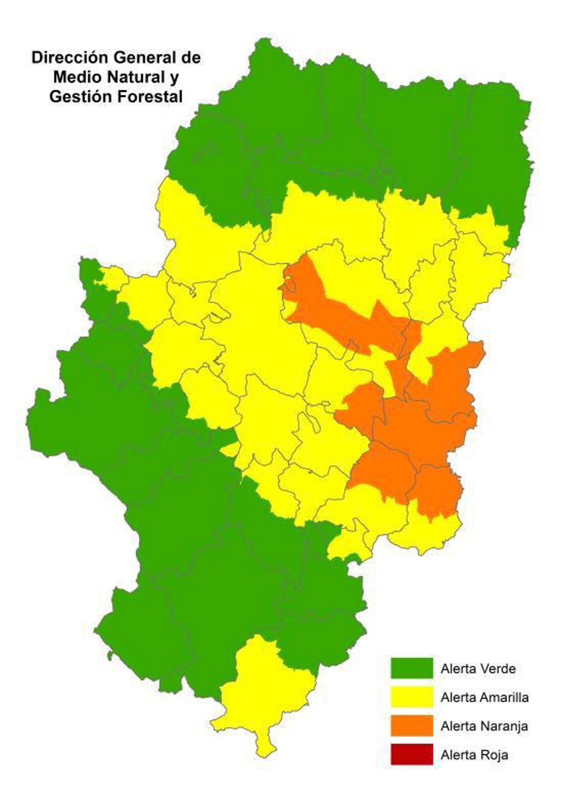 La Dirección General de Interior y Protección Civil ha informado de que Medio Natural y Gestión Forestal del Gobierno de Aragón ha establecido para este domingo, 27 de septiembre, nivel de alerta naranja por riesgo de incendios forestales en Bajo Ebro Forestal y Muela de Alcubierre.