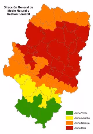 La Dirección General de Interior y Protección Civil del Gobierno de Aragón ha informado de que la Dirección General de Medio Natural y Gestión Forestal ha establecido para este, viernes 27 de agosto, un nivel de alerta roja de peligro de incendios forestales en varias zonas de Aragón.