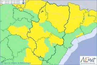 Igualmente, será efectivo para las Cinco Villas y la Sierra Ibérica, en la provincia de Zaragoza. El aviso está fijado entre las 00.00 y las 9.00 horas de este sábado, según ha indicado el Ejecutivo autonómico en una nota de prensa.
