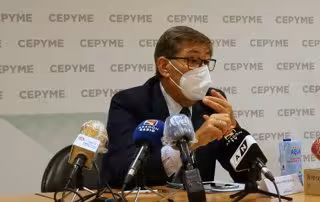 Aliaga en la rueda de prensa de este jueves en Cepyme. - EUROPA PRESS