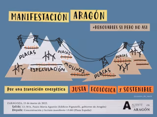 Desde ALIENTE han indicado que todas las personas preocupadas por el futuro de Aragón, están citadas para decir alto y claro que otro modelo es posible y que la transición justa también debe ser ecológica, sostenible y democrática.