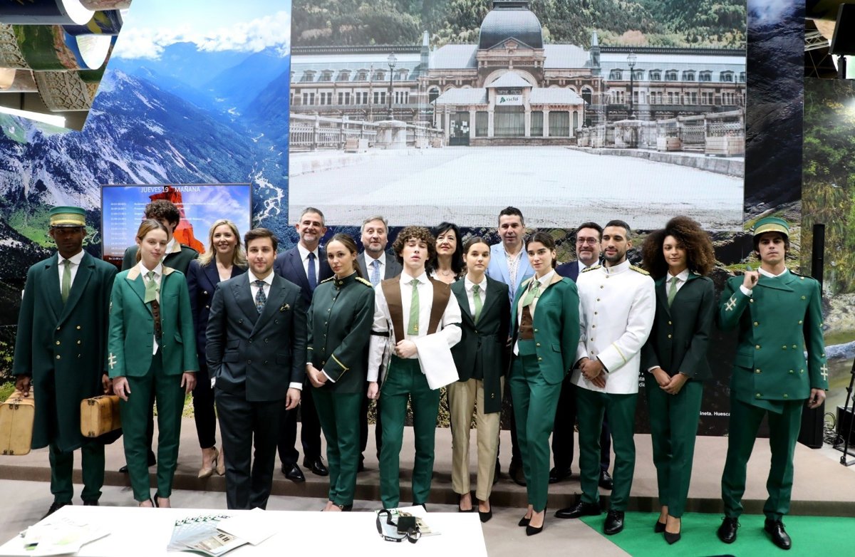El consejero de Vertebración del Territorio, Movilidad y Vivienda del Gobierno de Aragón, José Luis Soro, ha participado, en la Feria Internacional de Turismo (Fitur), en la presentación de la colección de uniformes creada para el personal del hotel ubicado en la Estación Internacional de Canfranc, que está inspirada en el alma ferroviaria de la localidad.