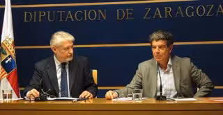 El diputado delegado de Cultura de la DPZ, José Manuel Larqué, y el coordinador de las charlas, el escritor Juan Bolea, han presentado en rueda de prensa la programación de este ciclo literario que comenzará este miércoles, día 9, con un coloquio con Almudena Grandes en el Palacio de Sástago de la capital aragonesa, y se desarrollará hasta el mes noviembre.