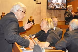 La presidenta del Grupo Parlamentario Socialista de las Cortes de Aragón, Eva Almunia, cooperará con el Gobierno popular de Luisa Fernanda Rudi para vencer la crisis económica, aunque se opondrá a sus políticas conservadoras para defender los servicios públicos y, en general, el Estado del Bienestar.