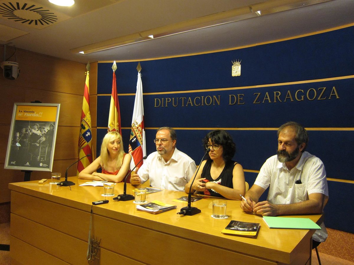 El diputado delegado de Turismo de la Diputación Provincial de Zaragoza (DPZ), Bizén Fuster, la alcaldesa de La Almunia, Marta Gracia, el concejal de Comercio, Turismo y Participación Ciudadana, José Manuel Latorre, y la directora y asesora de la recreación, Vicky Calavia, han presentado en rueda de prensa la segunda edición de esta actividad, 'La Almunia... se rueda!!', que se desarrollará este sábado, 24 de junio, y el próximo fin de semana, días 1 y 2 de julio.