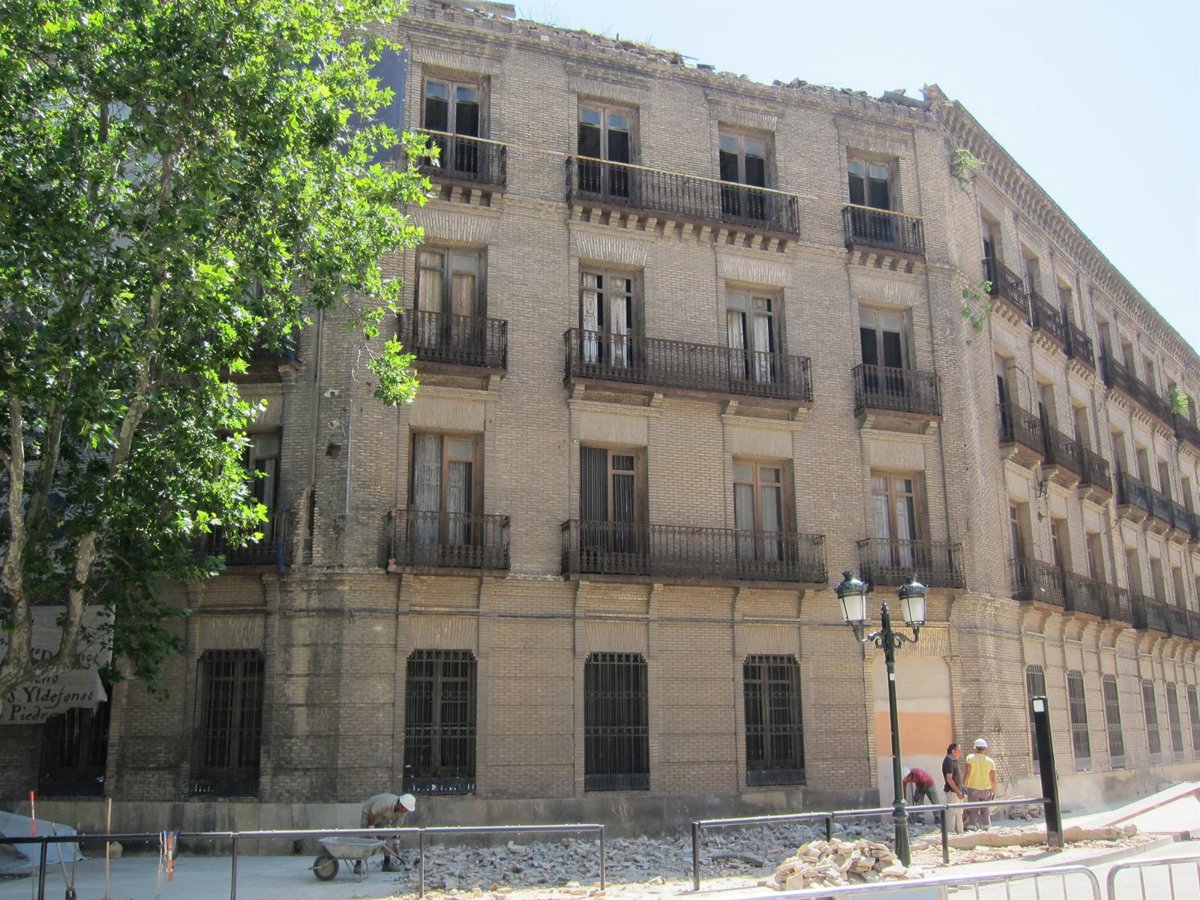 El portavoz del grupo municipal de IU, José Manuel Alonso, ha exigido responsabilidades a la Gerencia de Urbanismo del Ayuntamiento de Zaragoza por el derrumbe del alero del chaflán de la parte delantera del antiguo cuartel de Pontoneros, situado en la calle Madre Rafols.
