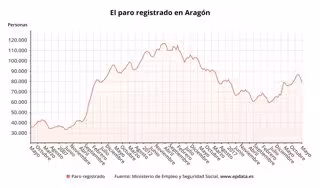 Respecto a mayo de 2020, el paro ha aumentado en Aragón en 450 personas, lo que supone un leve incremento del 0,57% en tasa anual.