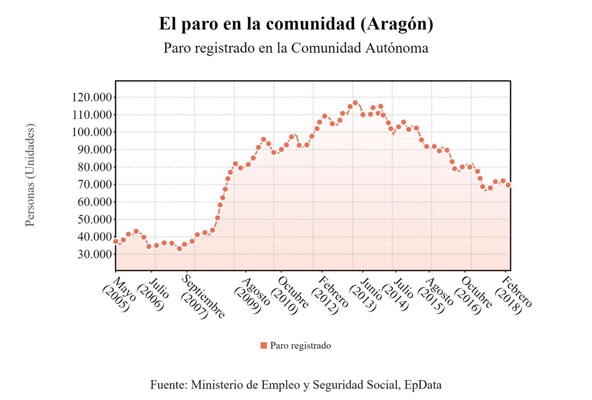 Respecto a abril de 2017, el paro registrado en Aragón ha disminuido un 7,36 por ciento, es decir 5.408 desempleados menos. En el conjunto del país, en términos absolutos, el paro ha bajado un 6,64 por ciento, 237.168 parados menos.