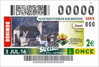 Ansó protagoniza los cupones de la ONCE del día 3 de julio, perteneciente a la serie 'Nuestros Pueblos más bonitos'. Un total de 5,5 millones de cupones difundirán la singularidad de estas localidades por toda España.