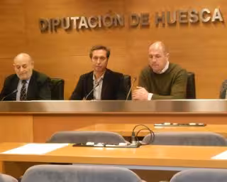 El diputado delegado de Deportes de la Diputación Provincial de Huesca (DPH), Javier Bertoz, el alcalde de Boltaña, José María Giménez Macarulla, y el presidente de la APDH, Jaime Ferrer, han presentado este martes en rueda de prensa la presente edición de la gala y los nombres de los últimos premiados.