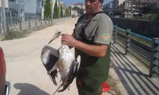 Estos efectivos iniciaron la operación después de recibir la llamada de un particular notificándoles la presencia de un ejemplar de cigüeña común que, aparentemente, no podía volar, en el río Vero, en la localidad de Barbastro.